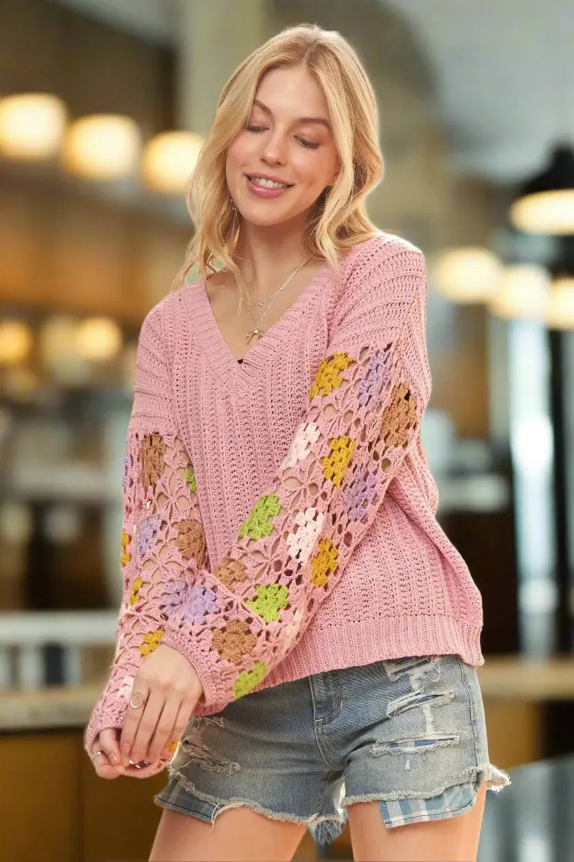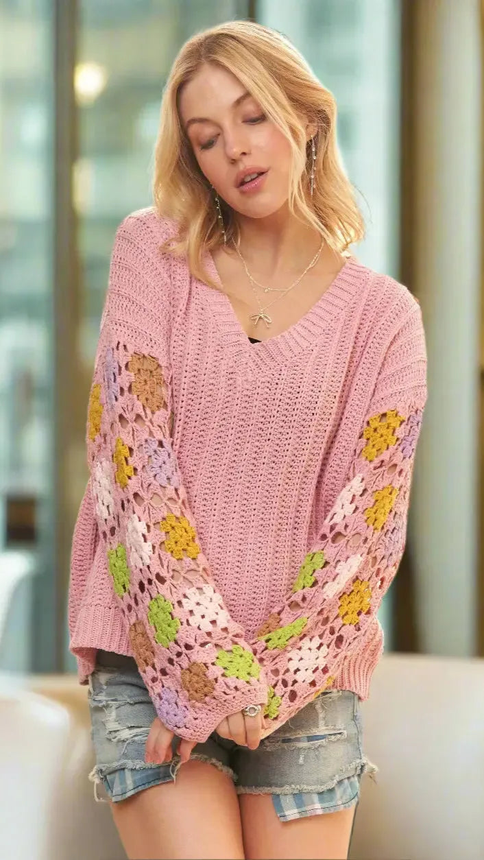 This multicolor sleeve knit top is a vibrant and stylish addition to your wardrobe. The mix of colors in the sleeves adds a fun and eye-catching element to the top. The knit fabric provides warmth and comfort, making it perfect for cooler weather. Pair this top with jeans or leggings for a casual and trendy look. Whether you're running errands or meeting friends for coffee, this multicolor sleeve knit top will keep you looking chic and on-trend.