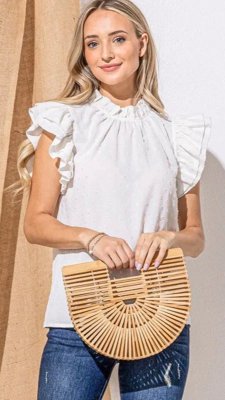 Polka Dot Textured Double Layered Ruffles Blouse