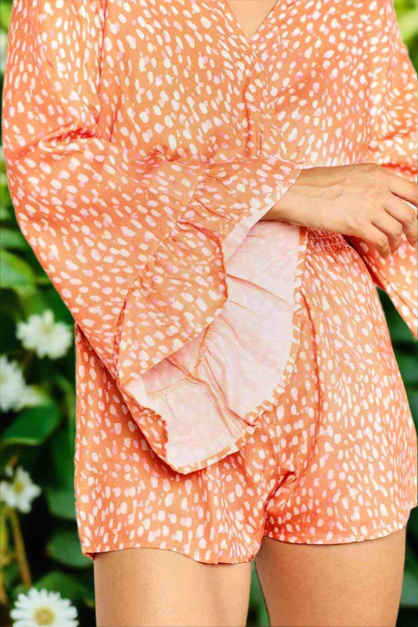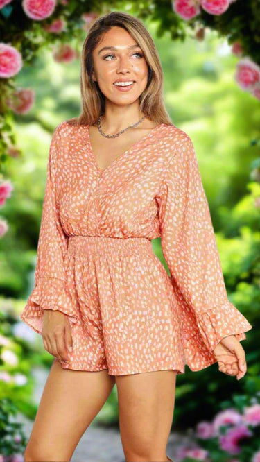 Este mono estampado presenta un escote cruzado que le aporta un toque de sofisticación. Las mangas largas y acampanadas le dan un aspecto divertido y elegante. Los detalles fruncidos aportan textura y un ajuste favorecedor. Con su vibrante estampado, este mono es perfecto para destacar. Es versátil y se puede usar tanto formal como informalmente para cualquier ocasión, lo que lo convierte en una prenda imprescindible en tu armario.