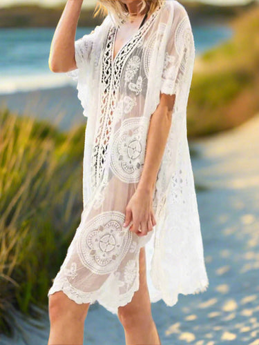 Fresco y elegante, este pareo calado con escote en V presenta delicados detalles calados y aberturas laterales que te permiten moverte con libertad y estilo. Perfecto para usar sobre tu traje de baño, este pareo para mujer añade un toque de sofisticación a cualquier look de playa o piscina.