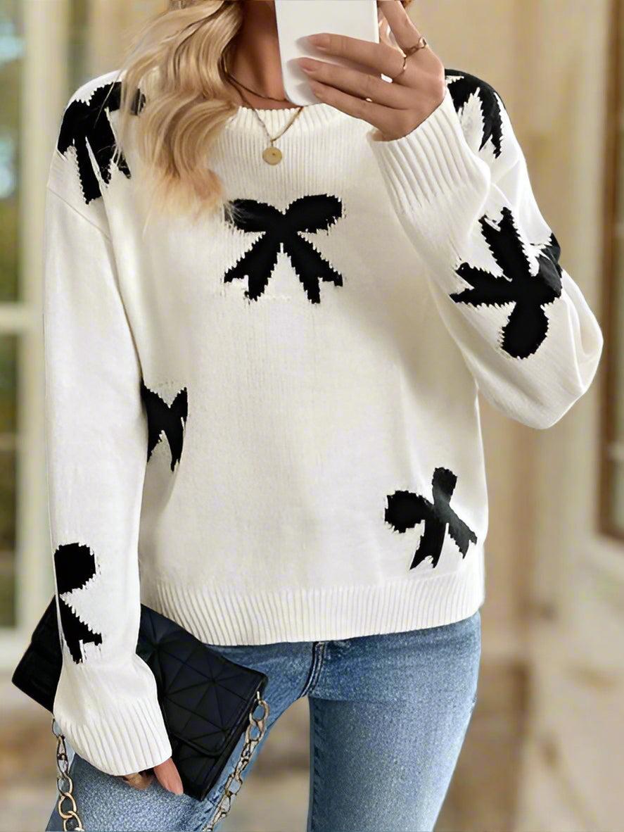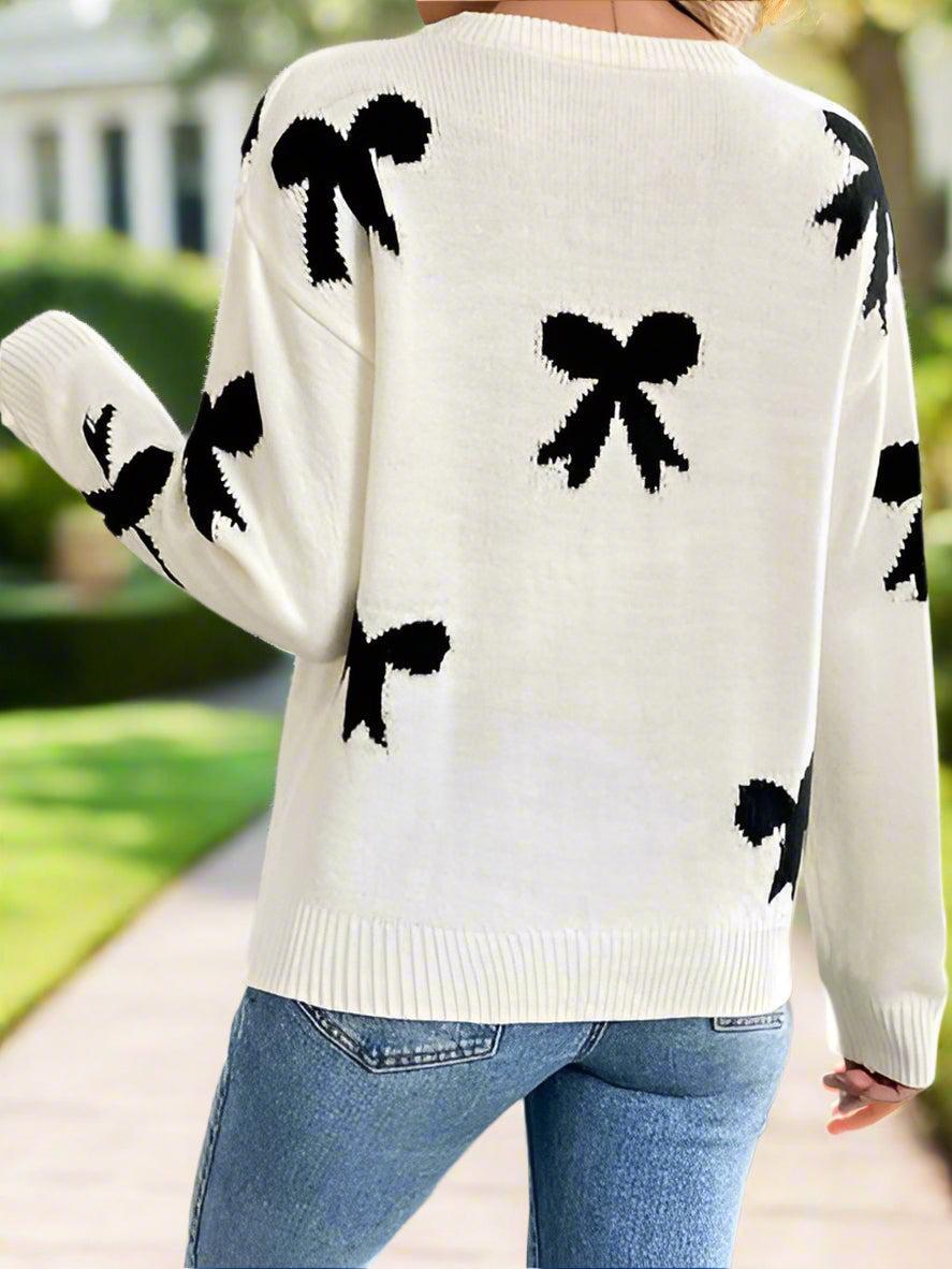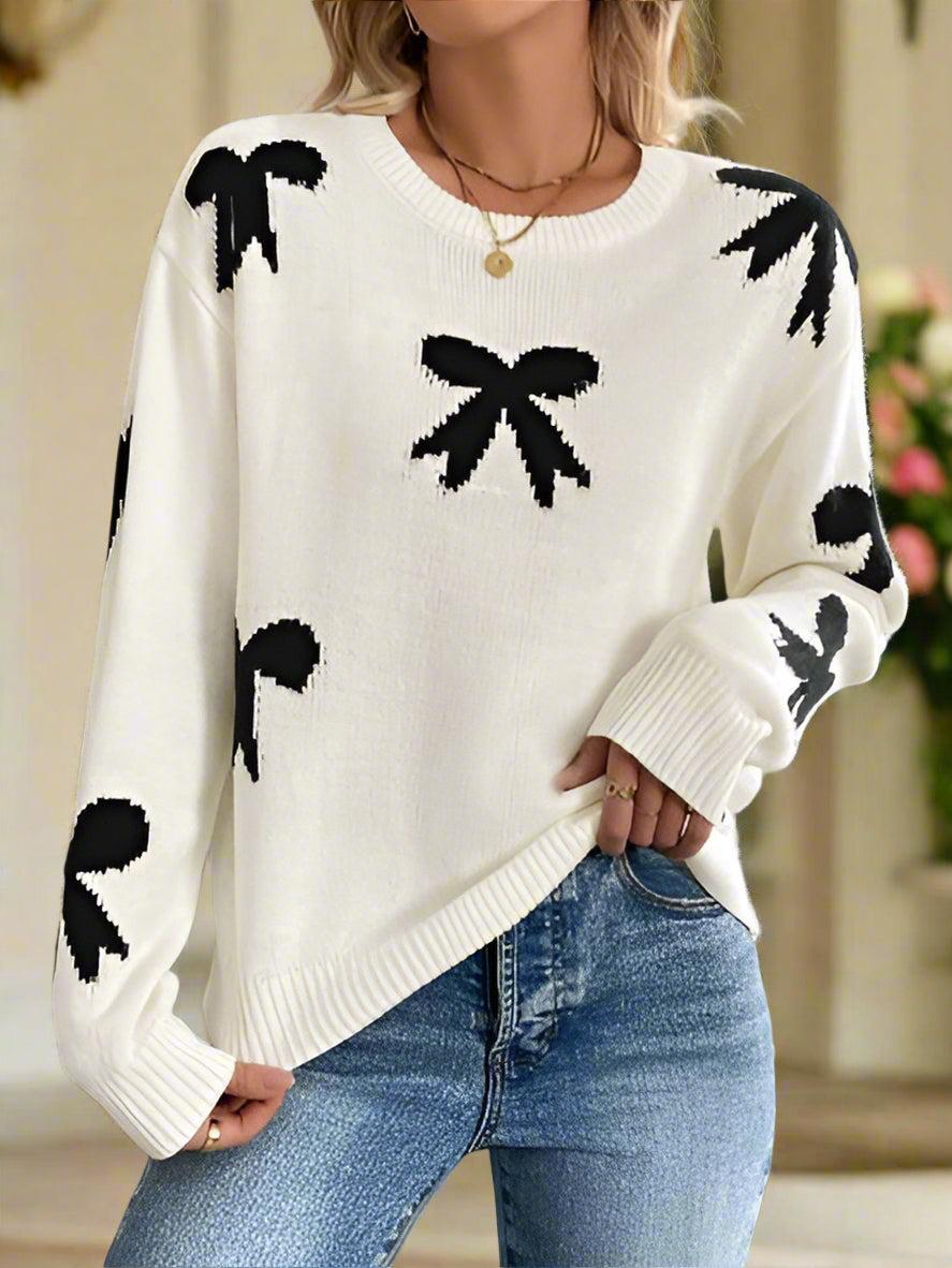 Suéter de manga larga con cuello redondo y gráfico de lazo perfecto