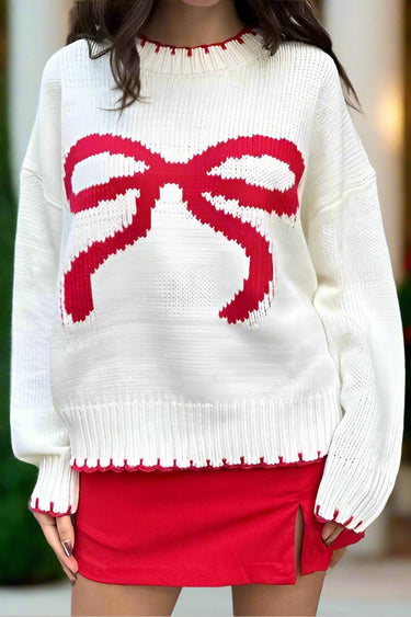Suéter de manga larga con cuello redondo y estampado de lazo
